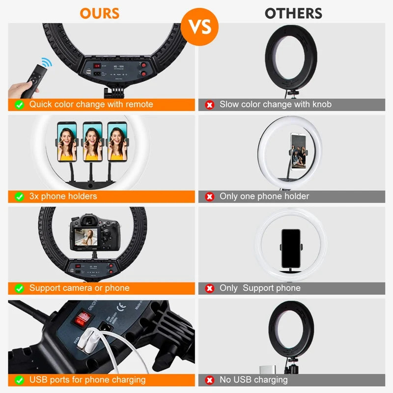 18 inch Ring Light with Tripod Stand 55W 3000-5800K CRI 90 Photo Studio Light for Vlog Video Shooting Makeup Selfie Ring Light