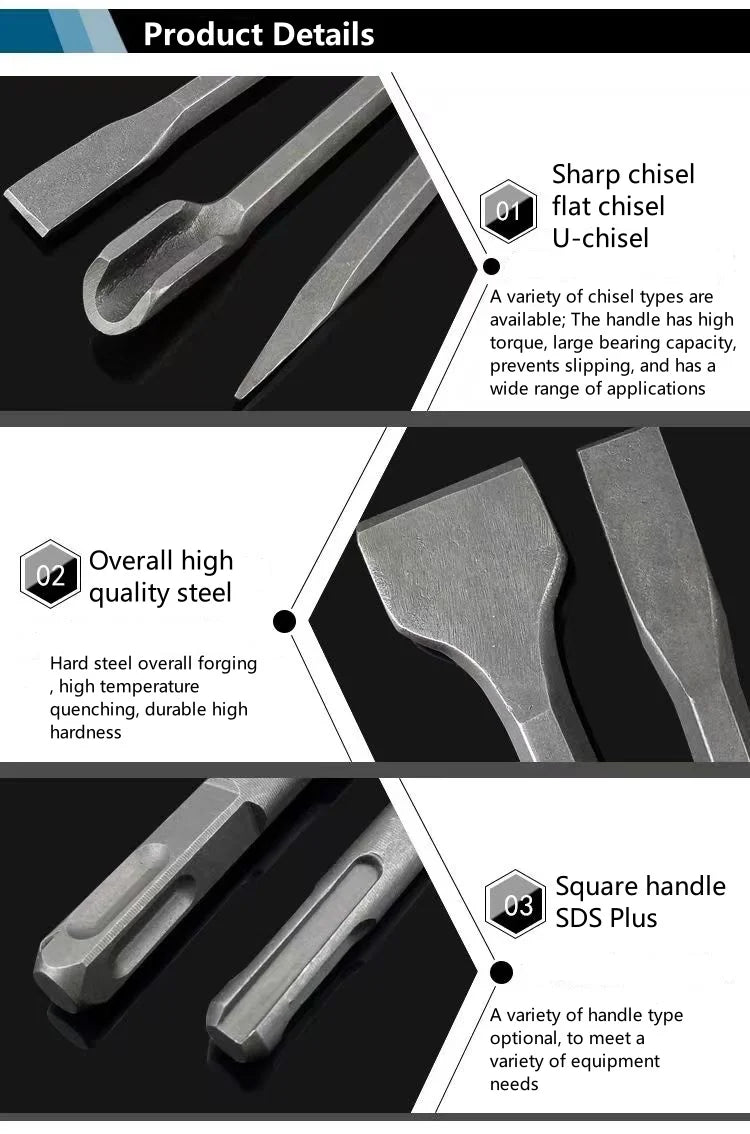 250mm Chisel Set SDS Plus Shank Electric Hammer Drill Bit Point Groove Flat Chisel Masonry Tools for Concrete Brick Wall Rock