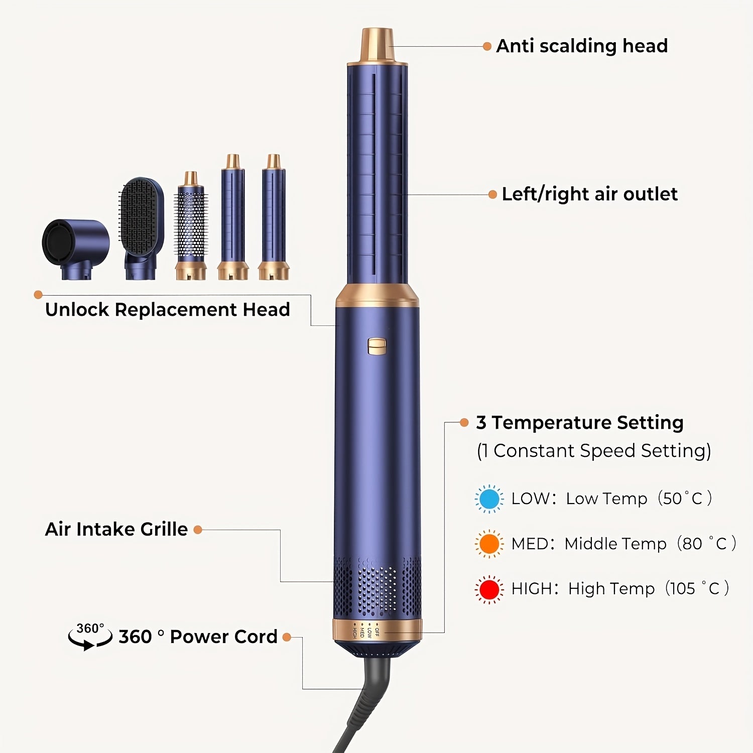 5-In-1 Hair Dryer Brush, a Versatile Styling Tool That Dries Quickly with Negative Ions, Perfect for Curling, Adding Volume, Straightening, And Creating Waves, Ideal for Salon Use
