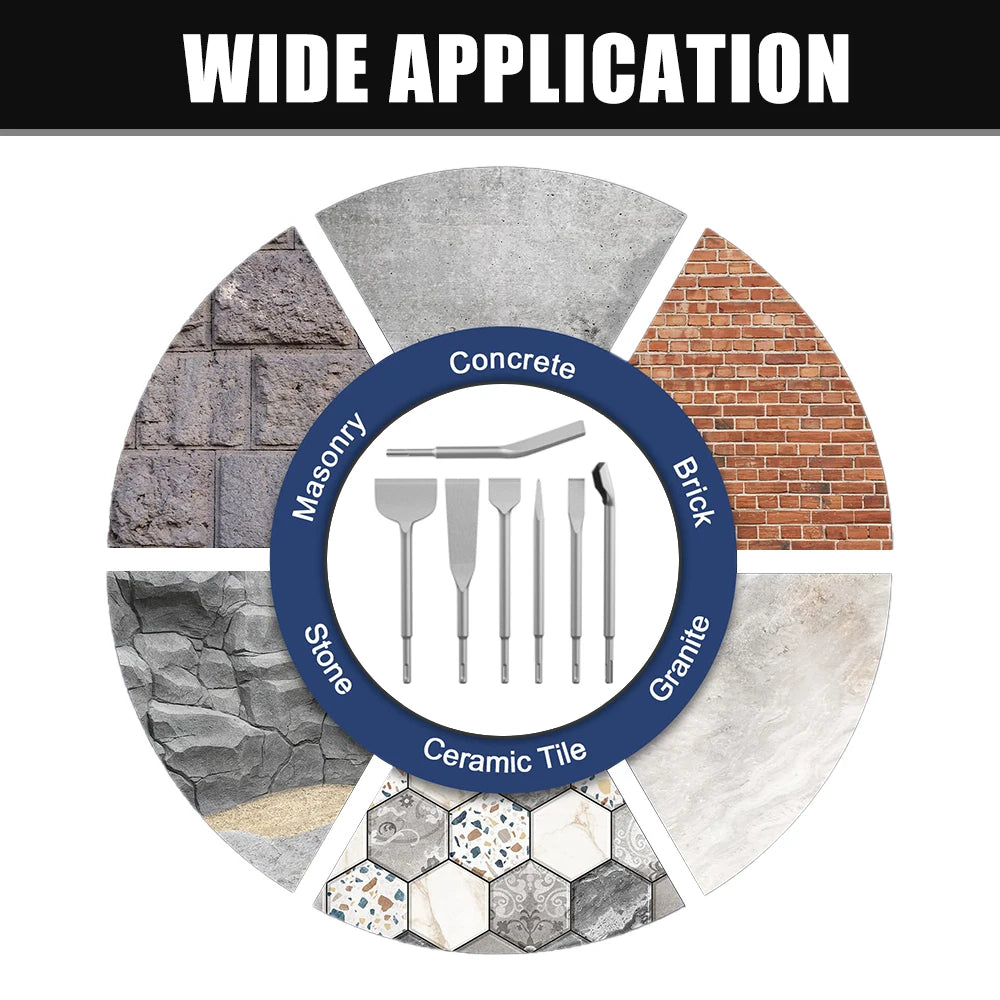 7Pcs Chisel Set SDS Plus Rotary Hammer Drill Bit Point Flat Scaling Chisel Masonry Tools for Removing Concrete Block Walls Rock