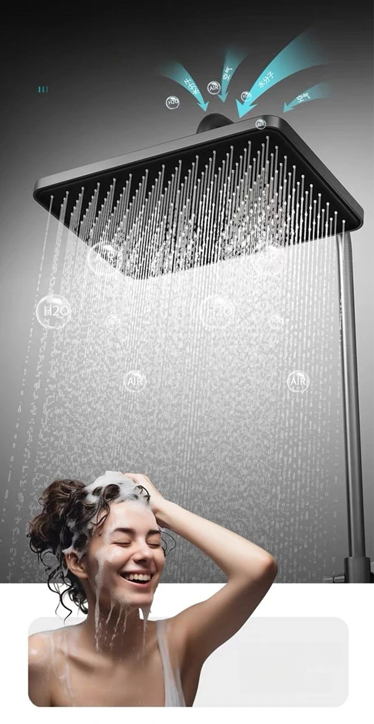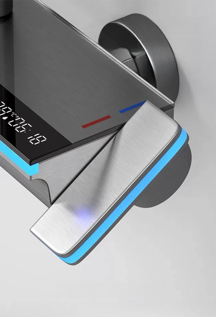 Bathroom Shower Faucet System with Lights Tempered Glass Shower Set Digital Display Copper Mixer Shower Faucet Set