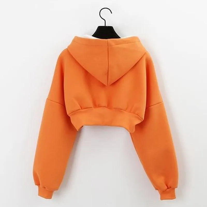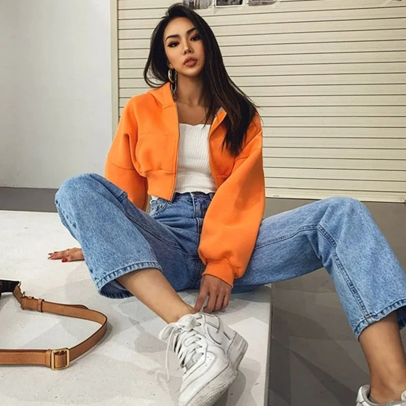 Cropped Zip Up Hoodies Women Streetwear Vintage with Pockets Short Sweatshirt Femme Outwear Harajuku Y2K Solid Hooded Jackets