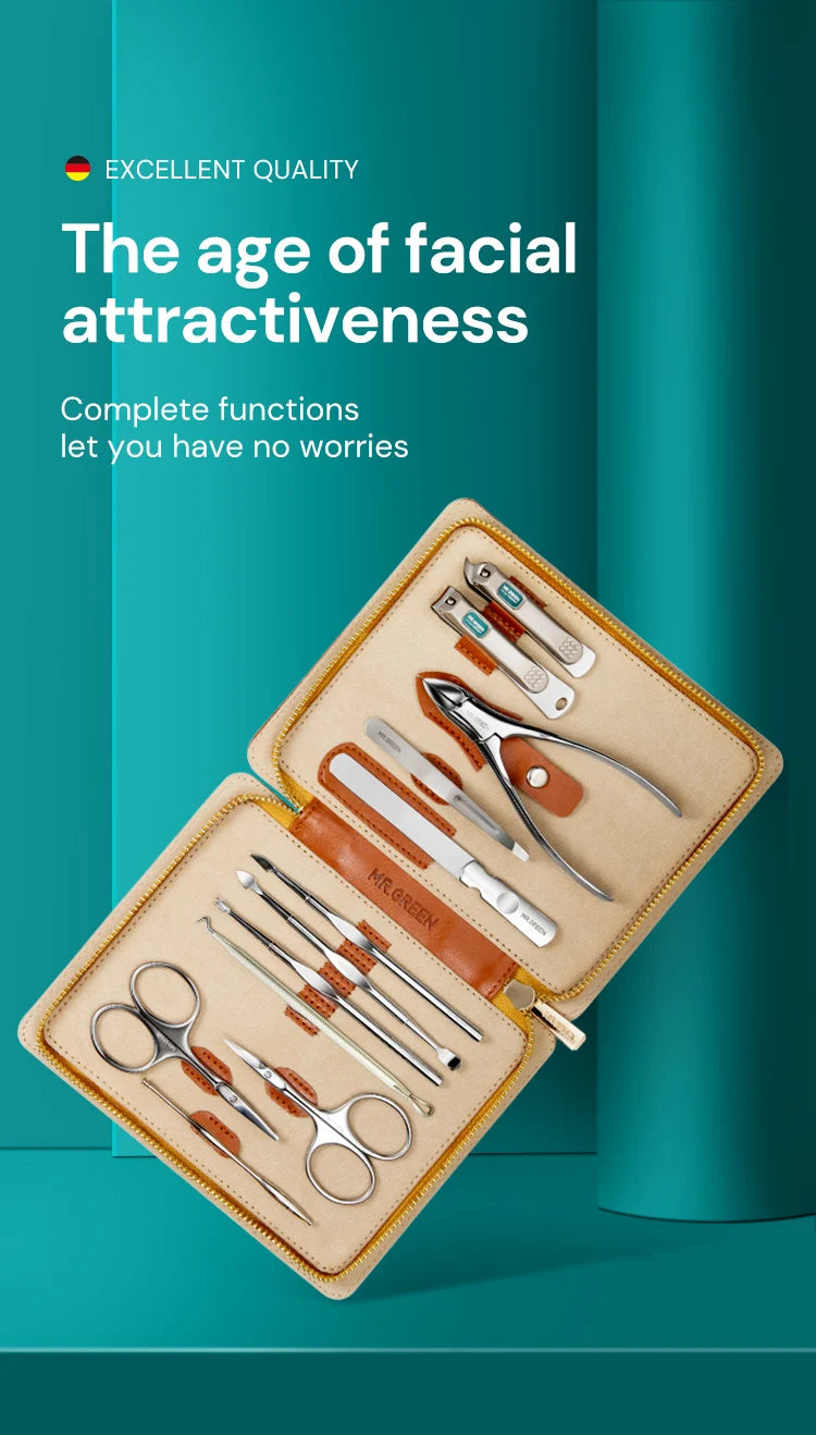 MR.GREEN Manicure Set 12 In 1 Full Function Kit Professional Stainless Steel Pedicure Sets With Leather Portable Case Idea Gift