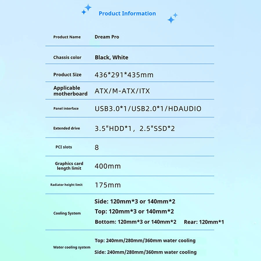 Power train Dreamland PRO ATX motherboard PC gaming 360 water-cooled Sea view room Double-sided glass gaming computer case