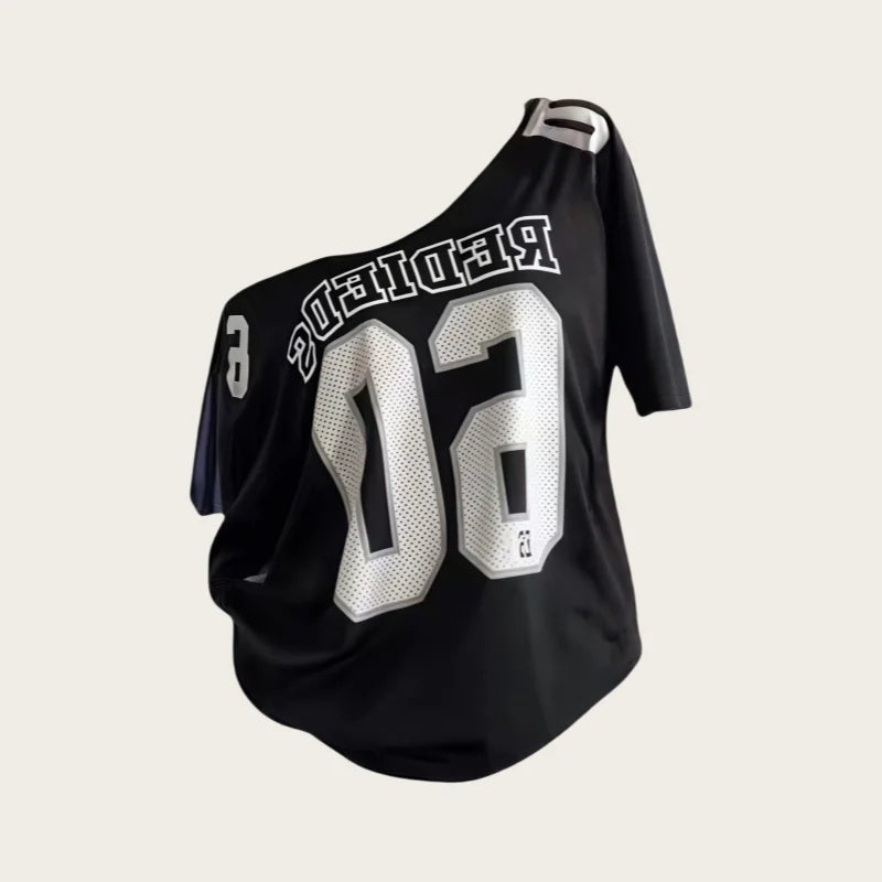 Model Number: Sporty Off-The-Shoulder T-Shirt